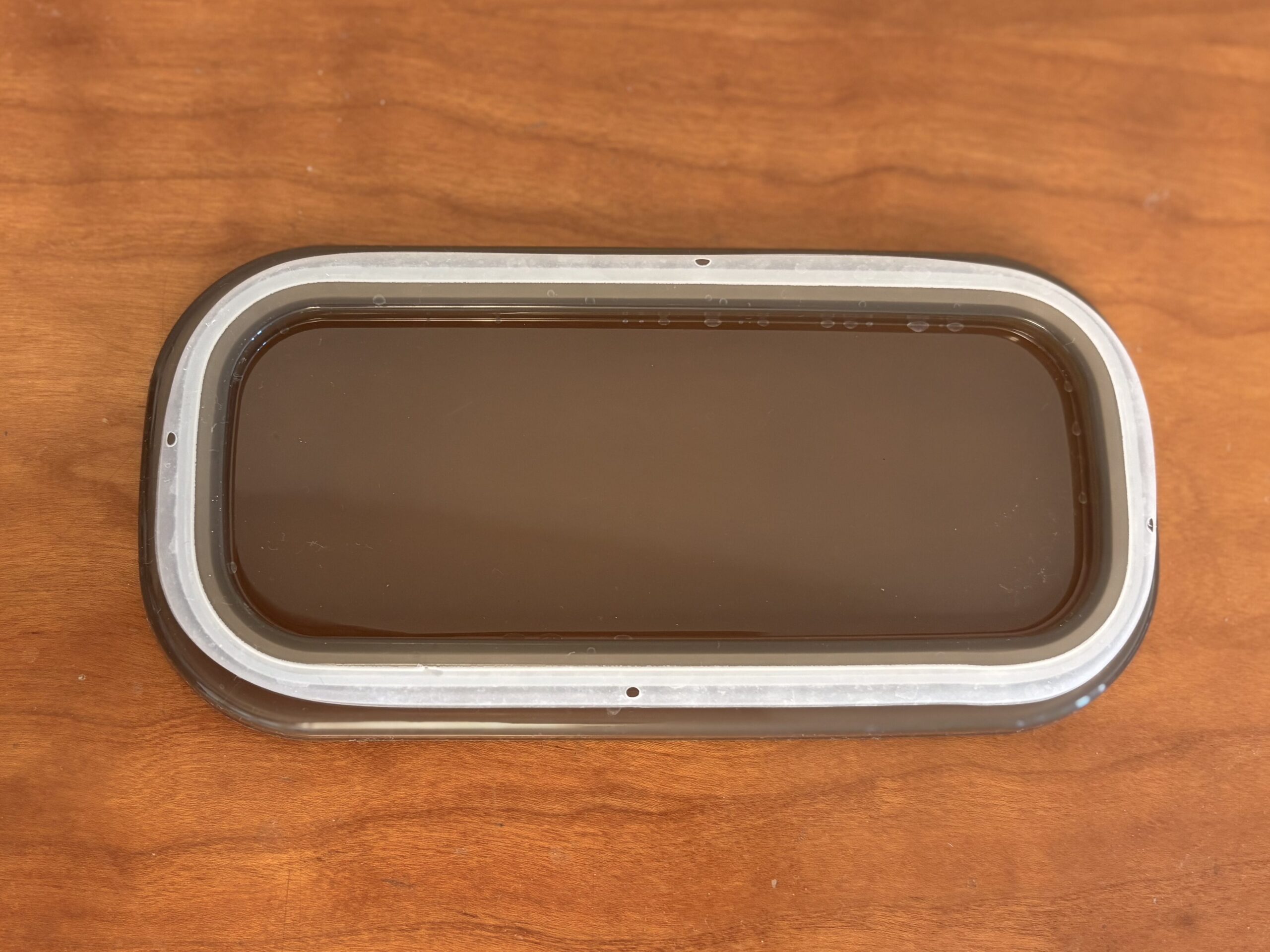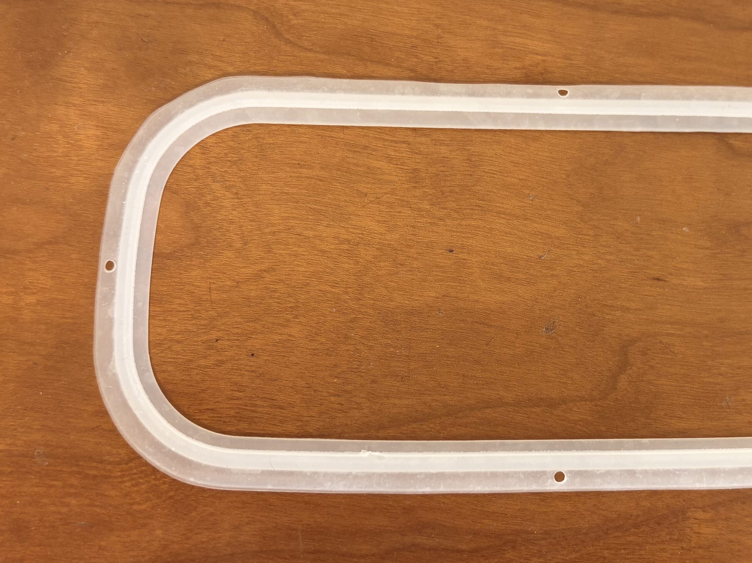 スリコのフタにはパッキンがついています。こちら、柔らかい素材で取り外しが楽なのですが、角が分かりにくい…。と思ったら、小さい穴があり、こちらを目印に取り付けることができる点、高評価です。