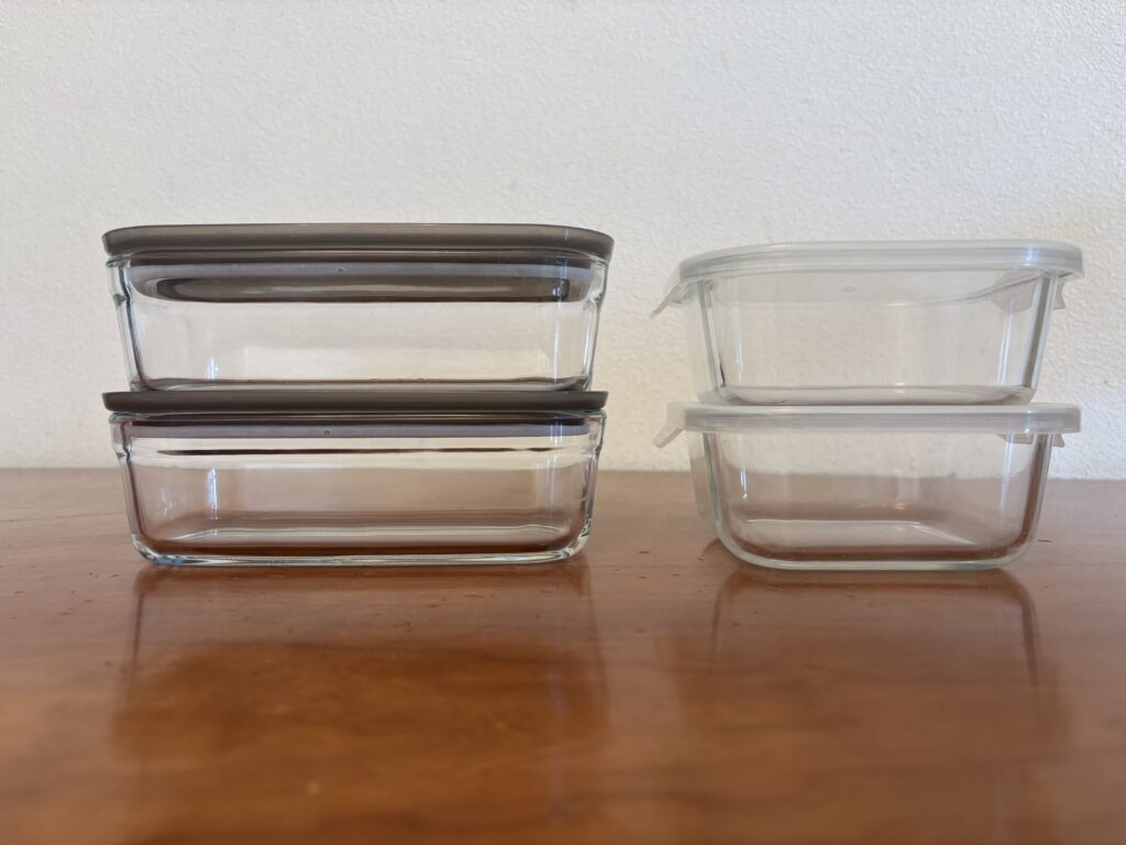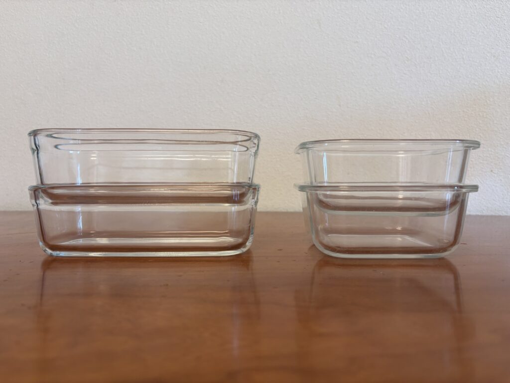 ずっと使っているダイソーのガラス容器と比較。重ねたサイズや、使ってみた感想もお伝えします。